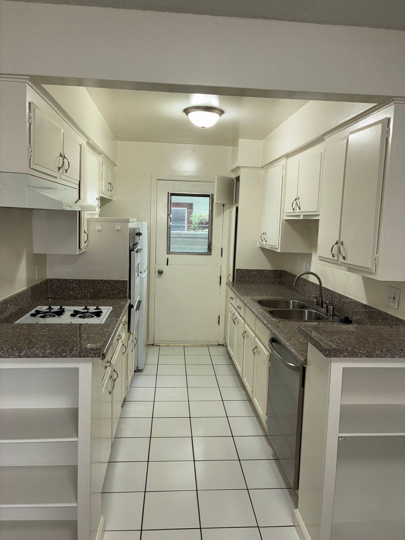 A spacious one bedroom one bathroom apartment with plenty of storage space, a full kitchen, dishwasher, tile and laminate flooring, and a private patio! Gated front and rear entry. Covered parking included!